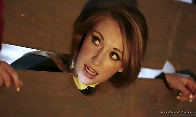 Cute babe in white undies getting punished