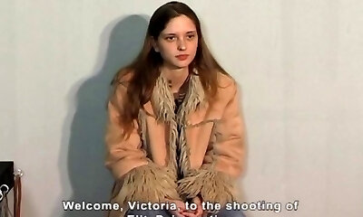 A bit timid and awkward Russian gal Manya Churikova exposes her tight pink slit
