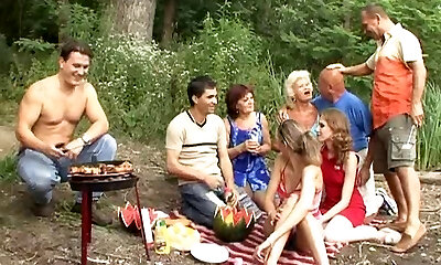 Nasty Dominika and her girlfriends poked hard in group plumb in the forest