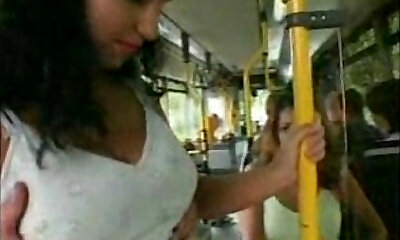 Busty, Chinese brunette is getting molested in a public buss, but she enjoys it a lot