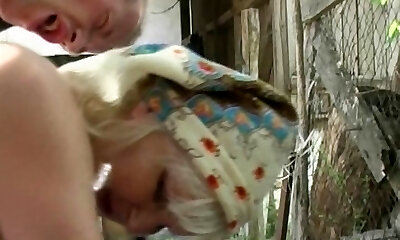 娇小的若虫深喉咙和骑着他的布鲁塔公公鸡