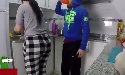 成熟的妈妈引诱一个年轻人和蹂躏他在厨房里